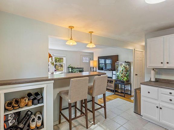 Welcome to this three-bedroom, one-bathroom Cape home featuring an open concept design, seamlessly connecting the kitchen and living room, where you'll find beautiful hardwood floors in the living room and both bedrooms.The first floor offers an ideal single-level living experience, featuring two bedrooms and a full bathroom. The heart of the home is the inviting eat-in kitchen, complete with an island that has a welcoming atmosphere for meals and gatherings.
