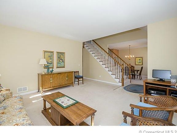 The most beautiful house and lot in the delightful Mill at Stonecroft 55+ community! Custom built on a double lot for added privacy, this lovely stand alone townhouse style home has it all! Wonderful open layout, first floor master, huge family room with cathedral ceiling, and kitchen with ample counter space and cabinets open to roomy dining area. Upstairs is a spacious second bedroom and unfinished space for storage, plus a second full bath. PROPANE heat- one of just a few units in the complex! The entire interior has been freshly painted in wonderful, neutral tones. The walkout lower level has high ceilings and windows and is perfect for finishing! Fabulous location for this lovely active adult community, close proximity to the senior center, and convenient to Hebron center and all services.