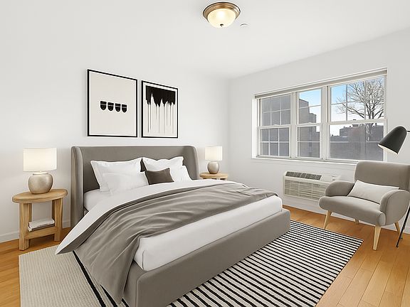 Spacious & Bright One-Bedroom on a Charming Tree-Lined Block This thoughtfully designed residence features an open kitchen with maple cabinetry, granite countertops, and stainless-steel appliances, complemented by oak hardwood floors throughout. Generous closet space is enhanced by additional secured storage, while the building offers a laundry room for added convenience. Residents enjoy access to a beautifully landscaped roof deck with sweeping Manhattan skyline views. Perfectly located just moments from McCarren and McGolrick Parks, acclaimed restaurants, boutique shopping, and the Graham Avenue L train. Fee disclosure: $20 per applicant. First month's rent + one month's security deposit.