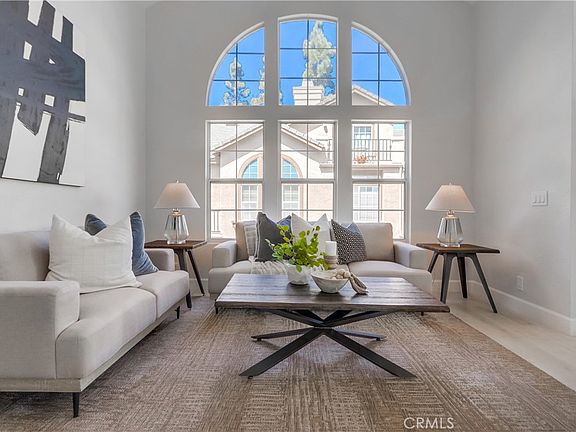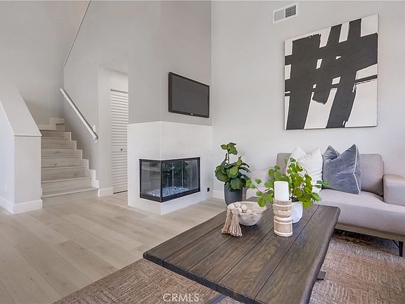Gorgeous newly remodeled and beautifully updated throughout with exquisite new features and amenities and a highly sought-after floor plan which includes dual primary suites, this stunning home, ideally located in the highly desirable St Tropez community, will take your breath away! Soak in the soaring two story vaulted ceilings and the abundance of natural light. New sleek luxury vinyl plank flooring and a freshly painted neutral interior throughout set the stage for an ideal living space. The main level boasts a spacious open floor plan which includes a light filled living area with a glass rock fireplace. The dining space features a dramatic new custom light fixture and is open to the living room and kitchen, with sliders opening to the large patio deck creating a perfect indoor-outdoor living space for entertaining and relaxing with friends and family.  The sparkling new kitchen is a dream with recessed lighting, sublime Taj Mahal Quartzite countertops and full backsplash, timeless new white shaker cabinetry, new stainless-steel appliances, new stainless-steel sink and faucet, new hardware, and a prized Quartz topped island with breakfast bar. A highly desirable bedroom suite is also superbly situated on the main level with high ceilings, 2 closets with mirrored closet doors, and an all-new en suite bathroom with new vanity and sink, new mirror and lighting, and a gorgeous step in shower enclosure with custom tiled shower surround. Upstairs is the second primary bedroom suite with vaulted ceilings, a private view balcony, a large walk-in closet with custom closet organizer, and a dazzling newly remodeled en suite bathroom with new vanity, new faucet and fixtures, new framed vanity mirror, new lighting, and new tub and shower with new fixtures and exquisite new tile surround with frameless glass enclosure. Home includes a convenient laundry closet with stackable washer & dryer on the main level, and a direct access extra deep 1 car garage with built-in storage cabinets with an abundance of storage on the lower level, plus 1 assigned parking space.  Just steps from community pool and spa, with lounging and picnic areas. Within walking distance of Argonaut Park, Aliso & Wood Canyon Wilderness Park, Creekside Park and Aliso Viejo Dog Park. Ideally located close to Glenwood Park, Aliso Viejo Town Center, shopping, dining, entertainment, numerous local parks, and easy toll road access. Just minutes from local beaches and Dana Point Harbor!