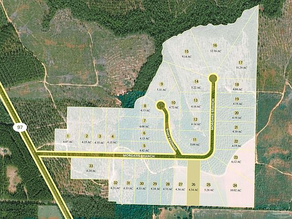 Welcome to Bluewater Creek Estates — Molino’s premier gated acreage community, offering 33 exclusive homesites from 4 to 12 acres with paved road frontage. Choose your own floor plan and bring your own builder. This 4.34-acre parcel offers elevated terrain with open pastureland and mature oaks along the southern edge. A pine buffer at the front provides privacy while the open setting expands design possibilities. Bluewater Creek Estates offers space, privacy, and nature just minutes from daily conveniences — 3 minutes to Hwy 29, 20 minutes to Navy Federal, 25 minutes to Downtown Pensacola, and 1 hour to the beach. With paved roads, water service, and natural gas available, it blends the peace of country living with modern infrastructure. This one-of-a-kind opportunity gives future residents the option to choose their own floor plan and select their own builder. Schedule your private tour today.