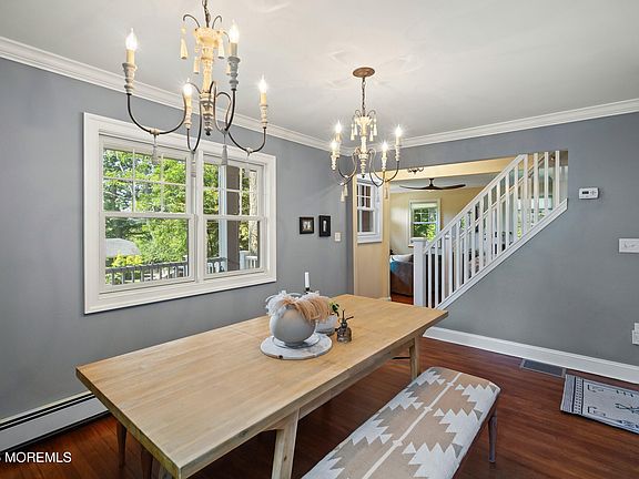 This picturesque retreat is tucked away on Mountainside Ave in Middletown's sought-after Navesink section! From the inviting covered front porch to the rich hardwood floors, every detail blends timeless charm with modern updates. The open-concept kitchen flows effortlessly into the welcoming living room, anchored by a classic peanut stone fireplace. A first-floor primary bedroom and stylishly updated bathrooms add flexibility and comfort, while the finished walk-out basement provides additional space for work, play, or guests. The terraced backyard and custom patio are designed for easy outdoor living and entertaining. Thoughtfully updated with care, this home perfectly blends character and modern living in an exceptional location.