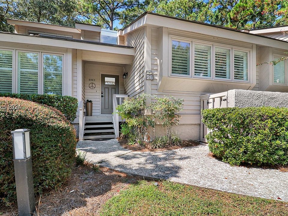 Welcome to 26 Muirfield Road - This gorgeous 3 BD 3 full BA townhouse sits right on the 2nd fairway of Harbour Town Golf Links, home of the PGA TOUR Signature event, The RBC Heritage! Embrace the peace & serenity of the cozy Carolina Room w/ beautiful golf views. Working remotely? Enjoy a large office desk upstairs overlooking the golf course. Beautiful open floorplan Kitchen w/ walk-in pantry & 2 story ceiling in the Living Room. Recently painted exterior, decks and service yards. Upgrades include new rear sliders and windows, plantation shutters, dehumidifer(2020) & HVAC (2021). Substantial storage space/closets! This home is amazing!