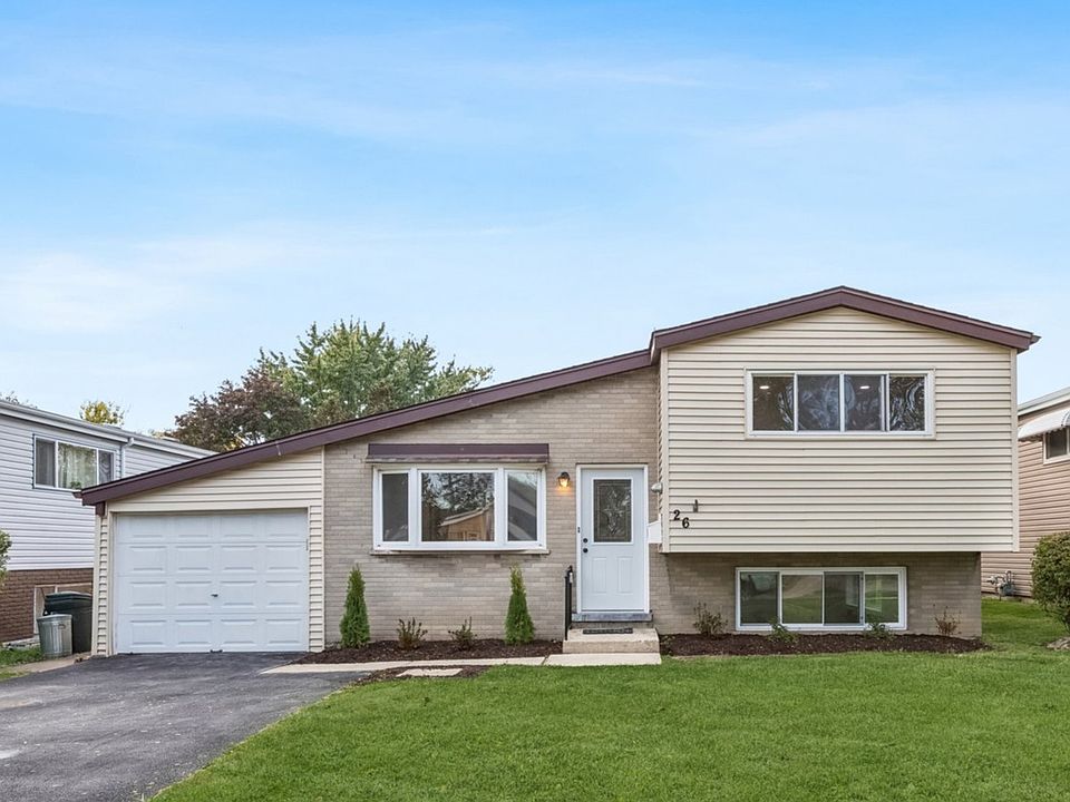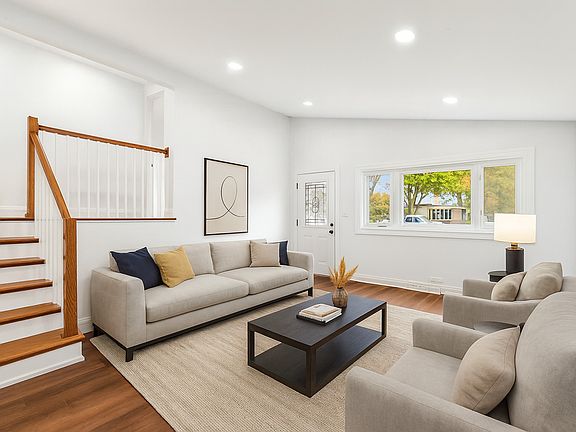 Welcome home to modern comfort and style! This beautifully renovated Lombard home combines timeless charm with today's sought-after finishes. Step inside to an inviting open-concept living and dining area that seamlessly connects to the stunning kitchen-complete with crisp white cabinetry, quartz countertops, stainless-steel appliances, and a spacious island offering extra seating and storage. It's the perfect space for entertaining or enjoying everyday life. The lower level features a bright family room, a convenient powder room for guests, and a dedicated utility/laundry area. Tucked privately away, the primary suite feels like a retreat with its elegant ensuite bath featuring a dual-sink vanity, large shower, ample closet space, and abundant natural light. Just outside the suite is a versatile den or office-ideal for working from home or relaxing. Up a short flight of stairs, you'll find three additional bedrooms with beautifully refinished hardwood floors and a stylishly updated hall bath. Take pleasure in the new windows throughout the home. Outside, enjoy the spacious backyard-perfect for gatherings, play, and relaxation. All this, just moments from downtown Lombard's charming shops, restaurants, and Metra station. Beautifully updated, perfectly located, and ready for you to move confidently into your next chapter!