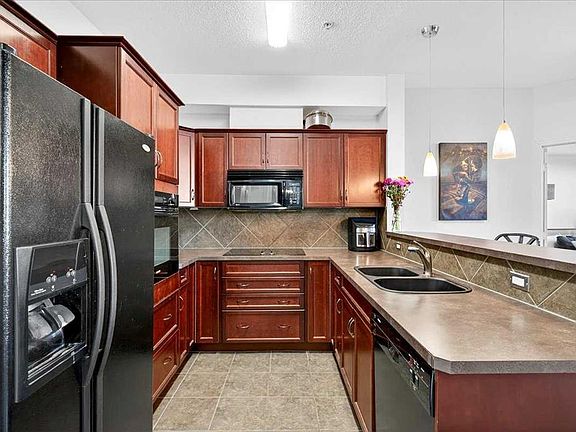 IDEALLY LOCATED 2 BED/2 BATH MAIN FLOOR UNIT WITH TWO TITLED PARKING STALLS AND TITLE STORAGE - THERE’S A REASON PEOPLE FALL HARD FOR SPRINGBANK HILL—it’s the rare corner of the city where you can hit the walking paths, grab groceries, and still feel like you live tucked into nature. And with this two bedroom unit at Robson Summit of Montreux, you get it all—plus an actual BACKYARD FEEL thanks to a GROUND-LEVEL PATIO that opens straight to the courtyard. It’s where coffee tastes better, the barbecue actually gets used, and your four-legged roommate thinks you moved here just for them. Inside, the layout makes sense (and let’s be honest, not all condos do). The kitchen feels grown-up—BUILT-IN WALL OVEN, ELECTRIC COOKTOP, and a BREAKFAST BAR that’s perfect for pancakes, wine nights, or both. Just off to the side, a small OFFICE NOOK quietly gets things done without stealing square footage from the fun parts of the home. The living room hits that cozy-without-cramped balance, with CEILING FANS keeping the air moving and patio doors bringing in courtyard light. Both bedrooms are smartly separated for privacy: the master gets its own WALK-IN CLOSET and ENSUITE, while the SECOND BEDROOM loops into a CHEATER ENSUITE that wraps through the IN-UNIT LAUNDRY and back to the main space—an unexpectedly slick flow that makes everyday life less clunky. TWO TITLED UNDERGROUND PARKING STALLS, and a TITLED STORAGE LOCKER handle the grown-up details, while the building’s fitness room, bike storage, and secure entry keep things easy. Step outside and the location does the rest. GREENSPACES, PONDS, AND TRAILS wind just south of the complex, Stoney Trail gets you anywhere fast, and weekend errands stay civilized with Aspen Landing and Westhills minutes away. Call it what it is: A MAIN-FLOOR CONDO THAT LIVES LIKE A BUNGALOW, trades elevators for open air, and feels like Springbank Hill without the maintenance. Book a showing today—you’ll see how easy it is to picture yourself staying awhile.