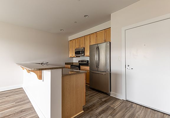 Central acGranite counter topsStainless steel appliancesBlonde pine cabinetsHigh ceilingsNew vinyl plank floors