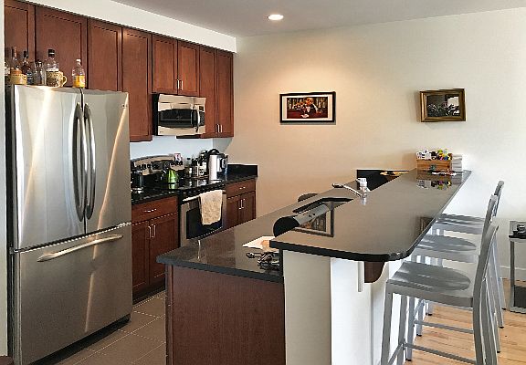 Media is of similarly updated apartments at the same property. Beautiful luxury unit featuring open kitchen / living area with high ceilings, maple cabinets and granite, all new vinyl flooring to be installed, central AC, washer/dryer in the unit. Elevator in building with on-site parking. Pet friendly building! $25 monthly pet rent. One outdoor parking space included in the monthly rent. Tenant pays gas, electric & separately-metered Water/Sewer