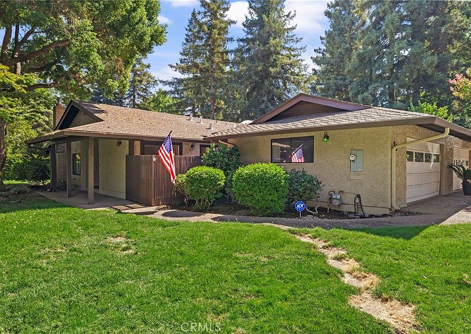 Live amongst the trees in beautiful Northwood Commons, Chico’s most desirable condominium communities. This home features a spacious living room with vaulted beam ceilings, cozy brick fireplace, sky lights and large windows that bring the outdoors in. This 2 bed 2 bath home boasts a living room and primary bedroom that are both generously sized, offering a comfortable and open feel. Enjoy resort style amenities including a pool, spa, clubhouse, tennis court, and bocce ball court, all covered by your HOA dues. The HOA also takes care of roof maintenance, yard landscaping, garbage, water, and shared septic, making for easy, simplified living.