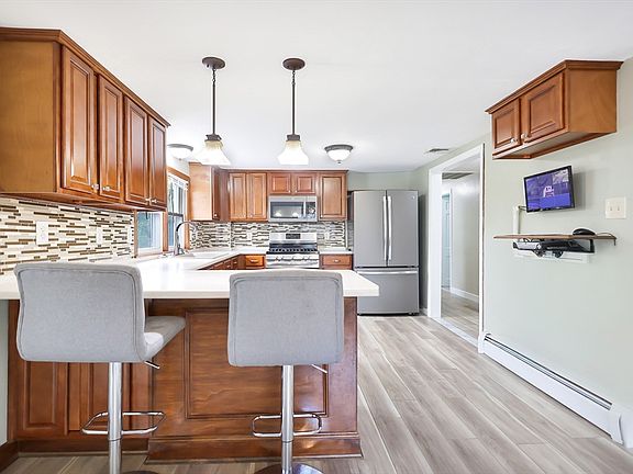 Hurry Over to view this well maintained and spacious Split-entry home set on a beautiful oversized lot on a quiet side street in a very desirable location close to everything including shopping, restaurants, movies and highway access. Step inside to easy living and entertaining with the open concept floor plan featuring a sunlit living room, dining area and updated cabinet packed kitchen with breakfast bar plus three good sized bedroom with ample closet space, a full bath and laundry area complete the main level. Lower level is the perfect set up for any in-law needs with a kitchen/living area and space for a bedroom plus a convenient half bath and walk in storage room. Enjoy your back yard private oasis with two decks and above ground pool. Updates incl. Roof, heating and hot water, most windows, salt water pool, mini split and don't forget the 2 car garage and extra large driveway for ample parking. RECENT APPRAISAL WAS DONE IN JUNE 2025 AND WE WOULD BE HAPPY TO SHARE DETAILS.