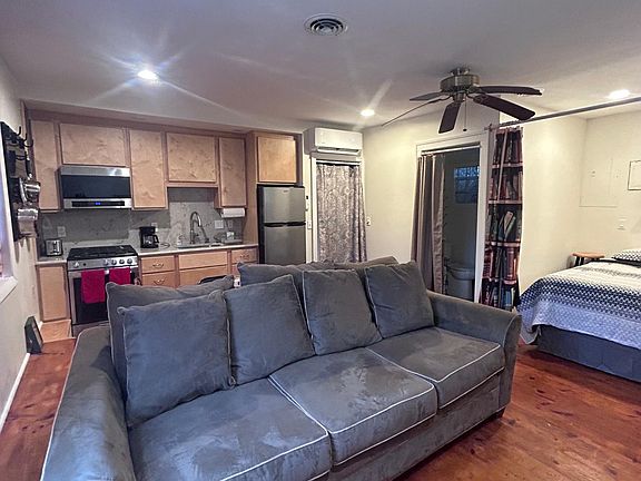 Furnished Studio Apartment in prime Red Hook location between Bard College and the village. Move right in and get comfortable for the winter ahead!! Queen Bed, Couch, TV, Washer/Dryer, and Dining Table with chairs all included in monthly rent. Radiant floor heating in bathroom with luxe walk in shower. Gleaming hardwood floors through out and lots of windows for natural light. Splits system for cooling and heating. Off street parking. All utilities included!