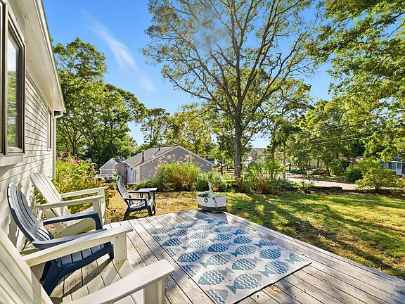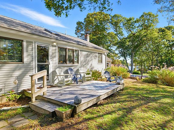 Spectacular views of Follins Pond! Sit out on your front deck and enjoy the salt water breezes and Cape Cod feel. Welcome to 26 Olivia Walker Way--your year-round Cape Cod retreat with private beach rights and easy access to Bass River. This sunlit home features a vaulted, beamed ceiling, hardwood floors, and sliders to a back deck surrounded by beautiful gardens and outdoor lighting. The eat-in galley kitchen offers a 5-burner gas stove and plenty of cabinetry. Main-floor primary bedroom and full bath provide convenient single-level living. Enjoy gas heat, central A/C, a new architectural roof with skylights, and a new HVAC system (2022). The finished lower level includes a cozy family room with gas woodstove, additional bedroom, and laundry. Relax on the front porch, rinse off in the outdoor shower, or entertain in your private backyard oasis. Move-in ready and perfect for year-round living or your summer Cape escape! A true Cape Cod home value you do not want to miss!