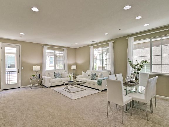 Modern 3 bed, 2.5 bath, 1,938 sq ft SFH in a gated community w/ $50K upgrades. Open floor plan w/ 2 car garage, w/ hill views from the kitchen and 2 guest bedrooms, dual zone central AC/Heat, fresh air vent control, dual pane/thicker pane windows. 1st level den w/ sliding glass door to the side yard. 2nd level living and open dining area features high ceilings, recessed lighting, half bath, and laundry. Chefs kitchen consists of double basin sink, gas cooktop, engineered hardwood flooring, breakfast bar, and walk-in pantry. Master bedroom with walk-in closet offers an upgraded bath consisting of tile above the tub/shower, dual sink vanity, and tile flooring. Low HOA dues of $174.50/mo includes secure gated entry, playground/benches, dog friendly grassy area, plants/vegetation, visitor parking, and common area maintenance. Easy access to downtown Hayward, including Century theater, restaurants, and public library. Quick drive to the Hayward Bart Station, I-880, I-580, and CA-92.