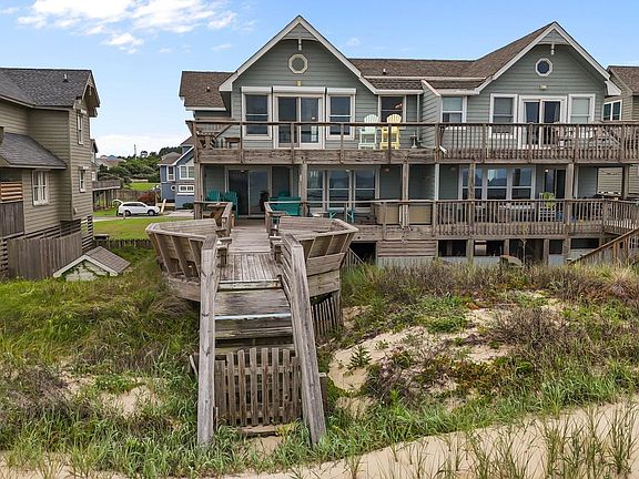 Welcome to 26 Pelican Watch Way in Southern Shores — a rare oceanfront gem offering the perfect blend of privacy, convenience, and sweeping Atlantic views. This spacious 4-bedroom, 3.5 bathroom home spans approximately 2,300 square feet and has never been used as a rental, serving only as a cherished second home. Ideally located just north of the Kitty Hawk Pier and only five miles from the heart of Duck, you’re close to local favorites like Shore Coffee Roasters, Steamers, Sojourn, and Duck Donuts. This home offers true privacy with separate front and rear entrances — a rare feature in the community — and is the only property in the neighborhood with a fully fenced yard and deck, ideal for pets or outdoor relaxation. A private walkway leads directly to a wide, stable beach protected by a healthy vegetated dune system, while the community pool is conveniently located just across the street. Inside, enjoy bright, warm Southern exposure throughout, thanks to large windows and sliding doors. The main living area is open and inviting with ocean views from the living, kitchen and dining rooms. The living room is enhanced by a gas fireplace and amazing water views. A covered front porch is accessible from the kitchen and is a great spot for drinking coffee or reading your favorite book. The upper-level primary suite is a true retreat, featuring tall ceilings, panoramic ocean views, and a private oceanfront deck perfect for watching unforgettable sunrises over the Atlantic. The home has been thoughtfully updated with new Mohawk carpet, new beds, new appliances, new toilets, and newer decks. The HVAC system is a high-quality Sea Coastal Series unit, installed and maintained annually by Atlantic Heating & Cooling. Additional features include two large storage closets under the house, three owner’s closets inside, easy-drain outdoor spigots and shower, hurricane shutters, hot tub and sleek cable rail deck fencing. Privacy dividers on the back decks enhance your outdoor living experience, offering added separation from neighbors. Optional membership in the Southern Shores Civic Association is available for just $70/year, granting access to a marina, soundfront park, tennis/pickleball courts, and additional private beach accesses. Oceanfront homes in Pelican Watch rarely come to market — especially those with this level of care, privacy, and upgrades. Whether you're looking for a serene second home or a future vacation rental, 26 Pelican Watch Way delivers a true Outer Banks lifestyle, where comfort meets coastal elegance.