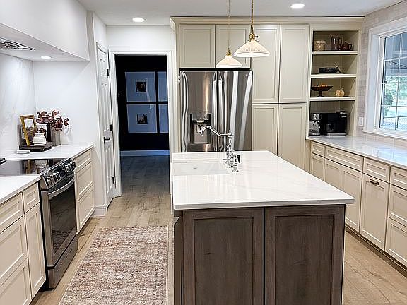 Every inch of this 4,000 sq ft home has been refreshed with new flooring throughout, fresh paint, updated trim, and smart-home-ready lighting. The heart of the home is a fully remodeled kitchen featuring new cabinetry, quartz countertops, stainless steel appliances, and sleek finishes— perfect for cooking and gathering. The large living room offers an open, inviting layout with new lighting and an electric fireplace, ideal for relaxing or entertaining.