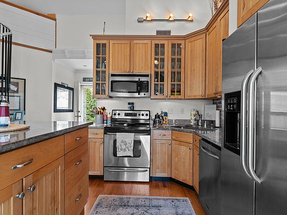 YEARLY UNFURNISHED RENTAL with a One Car Garage! Discover the charm and elegance of this beautifully restored condo, nestled on a serene street in the Boulevard area. This unique residence is part of a historical carriage house, once owned by the equestrian enthusiast Muriel Vanderbilt. The condo preserves its original shingles and slate roof, while modern renovations enhance its classic appeal. The kitchen features granite countertops and stainless steel appliances, highlighted by exposed brick walls. Cathedral ceilings and loft space contribute to a sense of openness and light. The main level hosts both bedrooms and bathrooms, including a principal bedroom with a private bath, walk-in closet, and a convenient washer/dryer setup. The second bath features a tub/shower combo. The versatile loft space can serve as a third bedroom, office, or additional living area. Enjoy seamless indoor-outdoor living with French doors leading to a private, fenced-in yard and patio perfect for relaxation and entertaining. Additional features include a one car garage and assigned parking space. This condo offers a fantastic alternative to a single-family home, combining historic charm with modern amenities. UNFURNISHED YEARLY RENTAL: Sept 1 2024-August 31 2025 Pets are negotiable.