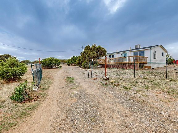 This charming 3-bedroom, 2-bathroom home offers a stunning view of the Moriarty Valley from a spacious, elevated deck perfect for enjoying the tranquil beauty of New Mexico's landscape. W/ 5 acres of land & 2 1/2 of it is fenced in there's plenty of room for outdoor activities, whether you have horses, motorhomes, or simply want space to spread out. Inside, the home boasts an Oasis filter system in the kitchen for fresh, clean water & a water softener. Recent upgrades include fresh paint, a new roof in 2022, & a new septic tank put in place in 2021, ensuring that the home is both functional and well-maintained. The peaceful, quiet setting also offers an incredible view of the New Mexico night sky, which is sure to delight stargazers. The property includes a functional 11x11 insulated shed.