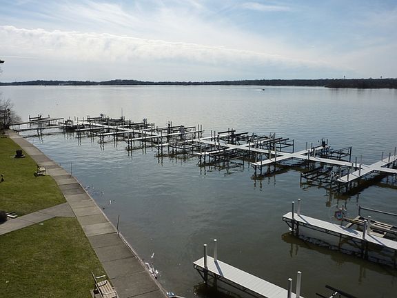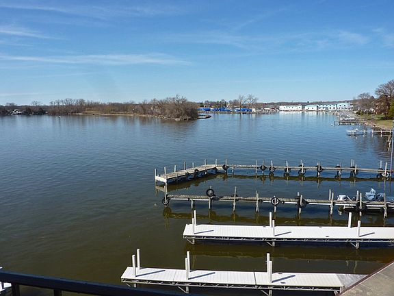 Waterfront condo on Pistakee Lake. Fabulous sunset views from the kitchen and balcony of this wonderful condo. Large kitchen with lots of cabinets, double oven, stainless fridge. Big living room with balcony overlooking the Pool and Lake. Two nice sized bedrooms, a master bath, and a second full bath. Lots of closets for storage. Laundry room on the floor with large storage closet for bike or extra belongings. This unit overlooks the pool and boat pier where you can dock your boat for a small fee for the season. Large parking lot with assigned parking. Close to town and Metra train to city. Docks restaurant 1 block away! Dine overlooking the water! All utilities included except electric.