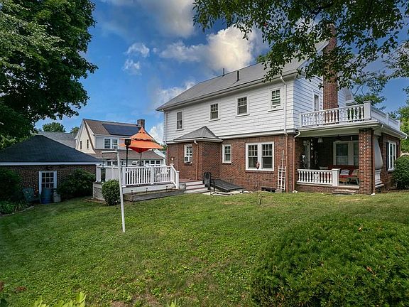 Elegant and stately spacious Colonial offers 4 bedrooms all with hardwood floors and main bedroom with walk-in closet & private tile bath! First floor consists of cabinet packed kitchen with gas range, beamed ceiling and hardwood floor, dining room boasts picture frame and crown molding as well as hardwood floor, cozy front to back living room with fireplace/wood stove insert also boast hardwood floors and beautiful natural wood picture frame and crown molding! Bright sunroom off living room and lovely patio off back of living room with French doors to both! 3rd floor is finished with hardwood and offers lots of bonus space for office, playroom etc. Beautiful mahogany deck and private back yard as well as a 2 car garage! OFFERS due Friday 7/15 by 12pm please