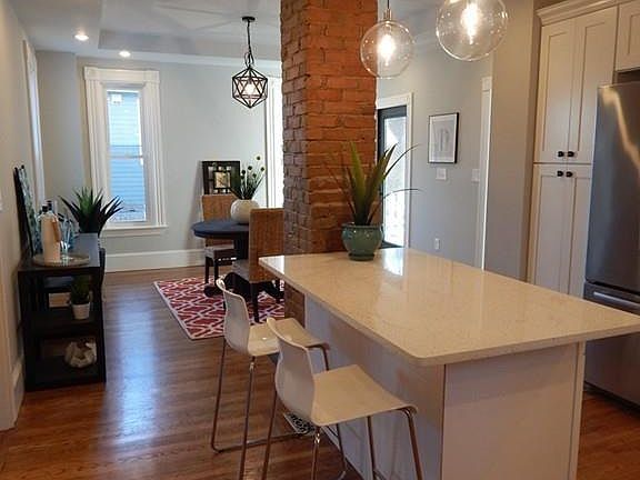 Meticulously renovated sun filled Victorian in prime location offers perfect blend of grace, charm and modern living! Stunning three level home renovated from top to bottom includes beautiful gourmet kitchen with tray ceiling, quartz countertops and Bosch appliances. Open dining area flows from the kitchen to patio--perfect for entertaining. Spacious living room quickly becomes your favorite place to relax. Extra large mudroom and laundry room to be envied. Welcome to your spa-like master suite. Views of the wooded hillside provide a peaceful environment. Third floor includes newly constructed space with two full sized bedroom and a view of the Boston skyline! Other upgrades include: New MassSave blown in insulation, all new energy efficient replacement windows and 2-zoned forced air heating set up for central a/c. Walk to train to Boston, farmer's market and shops! ALL OFFERS, IF ANY, DUE THURSDAY, JANUARY 28 at 2:00 pm