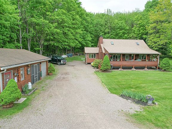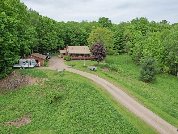 Country living at its finest! Nestled peacefully off the road, this home has been meticulously maintained by its original owners and has so much to offer. Inside you will find an open floor plan, 3 bedrooms, 2 full baths, vaulted ceilings, and tons of natural light. The kitchen is spacious, boasting newer appliances, gorgeous flooring, Corian countertops and it even overlooks the private backyard. Step right outside to a nice grilling/entertainment area. Or, grab your coffee and start your day on the large covered porch with serene views all around. Enjoy the amenity of having heating options. Choose forced air via propane, or use the wood stove adding to the country charm of this home. This home has a large basement with tall ceilings making it ideal for even more usable space of your choice. There is plenty of storage room! Outside you will find a heated/insulated two stall (three bay) garage complete with a large workshop for all of your tinkering needs! Out back is a large shed with custom glass and electric making its possible uses endless. Located on approximately 12 acres this home has so much to offer!