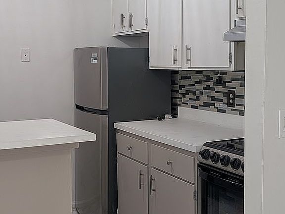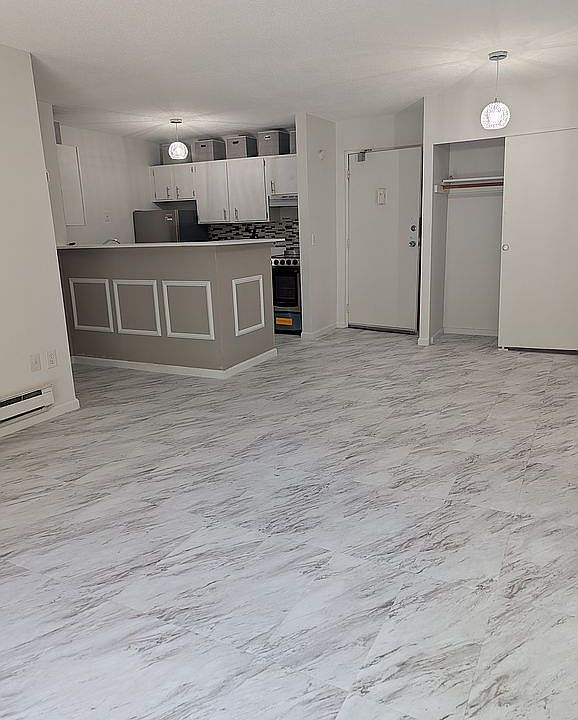 Contemporary lightingStriking masonry accent wallsSliding glass doorsNew stainless steel refrigeratorModern tiled backsplashAmple closet spaceOpen design kitchen