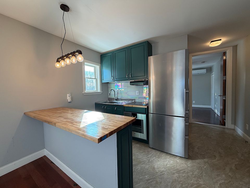 This bright and well-laid-out home features hardwood floors, modern lighting, and a functional open living space that flows nicely into the kitchen. The kitchen includes stainless steel appliances, ample cabinet storage, and a breakfast bar perfect for everyday living or casual entertaining.