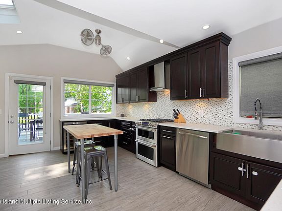 LOCATION LOCATION LOCATION! This brick cape is nestled at the very end of a beautiful and private dead end block in Westerleigh. Large renovated kitchen with skylight, tons of cabinets, quartz counter tops, new stainless steel appliances plus wine fridge and radiant heat on the floors. New windows, trex deck (with storage space under deck), and gorgeous brand new sunsetter awning with remote and extra UV ray shield - the yard is maintenance free and perfect for entertaining. The home also has 4 bedrooms, hardwood floors throughout, plus built-in garage with key code. There is also an unfinished basement with a half bath - can be beautifully finished. Quick accessibility to Victory Blvd with all shops and transportation through a little bridge at the end of the street - quick walk to all!
