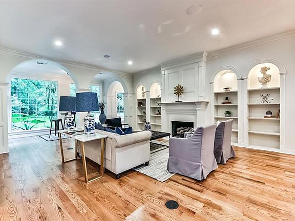 Outstanding custom home on a private, .80 acre corner lot in Grogan's Point! Surrounded by mature shade trees and located on a cul-de-sac street, this home features a circular drive, covered front porch, gorgeous trim work, abundant windows and built-ins throughout. Updates include: New a/c unit, new professional designer selected carpet and pad, large tile and red oak hardwood flooring, recent two tone interior paint, custom cabinetry and hardware, framed bathroom mirrors, tiled tub and shower surrounds, remodeled kitchen with new stainless appliances, quartz counters and tile backsplash, and much more! Open concept island kitchen overlooks sunny breakfast room and den; private study with French doors; both formals; master retreat down; 4 bedrooms, media and game room up; 3 car attached garage; expansive backyard with covered patio, sparkling pool (recently drained and acid washed) and spa.