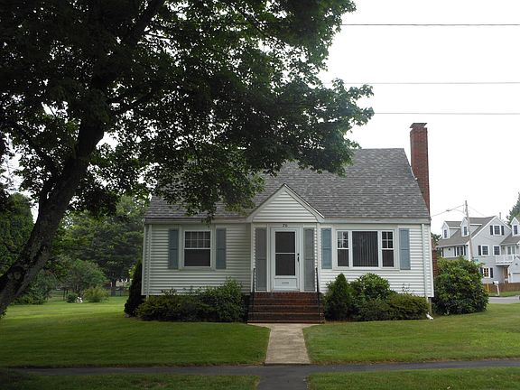 Move right in this Charming Cape situated on a nicely landscaped corner lot! Kitchen with tile floor opens to living room with gleaming hardwood floors, picture window, and brick fireplace. Updated bath with tile floor, and two bedrooms with hardwood complete first level. Hardwood stairs lead to two front to back bedrooms with carpet. Front to back family room with bar in basement. Vinyl siding, newer windows, newer roof, and town sewer. Close to park, shopping, and highways. A must see!!