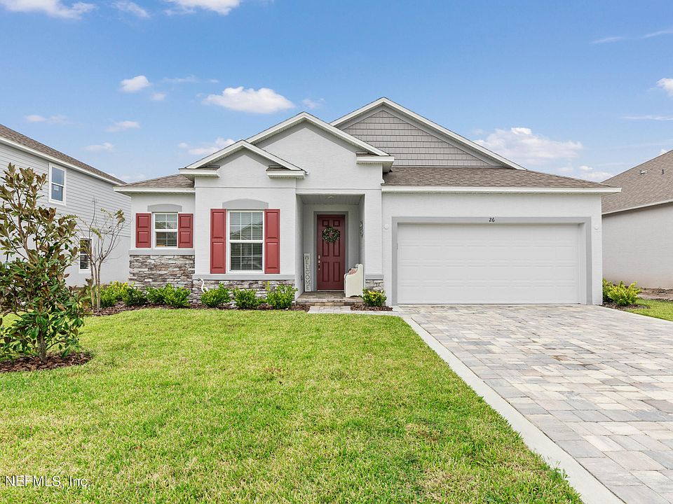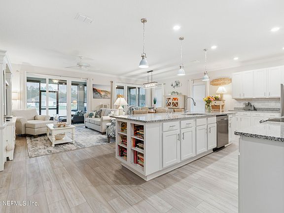 Want to live in a highly desired HOA community? If you said yes, then check out the amazing Sawmill Creek community in Palm Coast, Florida. This community started building single-family residential homes in 2020 so every home is newer and up to this community's fine standards. In addition, this community offers well-groomed common areas, buried utilities, sidewalks, curbing, street lights, a gorgeous pool, cabana and nature trails. Combine all these features with only being a 10-mile drive to the beach, what more could you want? This stunning 3-bedroom, 2 bath Maronda (Drexel Model) home was completed in 2022. It offers 1988 living square feet (under heat & air), lots of windows and triple sliders which bring in tons of natural light to this open floorplan. Come see all the upgrades!!