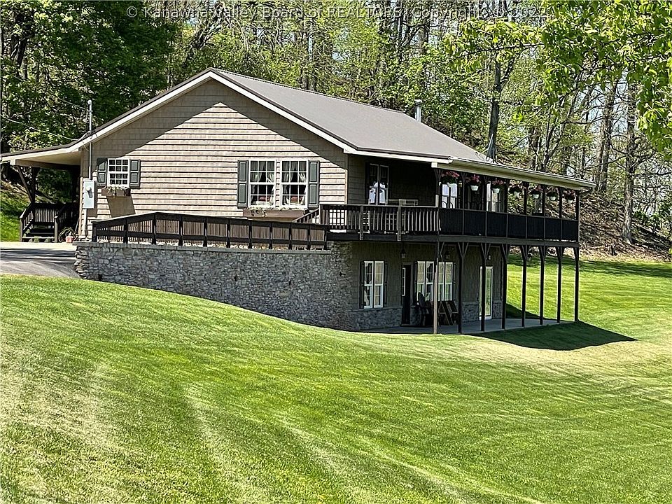 Outstanding home with panoramic views of gorgeous WV countryside! Contractor owned custom ordered doublewide home has 2x6 walls, custom windows, extra insulation, site installed siding, metal roof, walk out bsmnt to covered concrete porch, open floorplan, lovely stone work inside, full length covered front/back porches to enjoy the views & wildlife watching! 24x30 garage has solar energy & 14x30 side sheds; stocked pond ready to fish. This land is beautiful with some meadows & trails throughout!