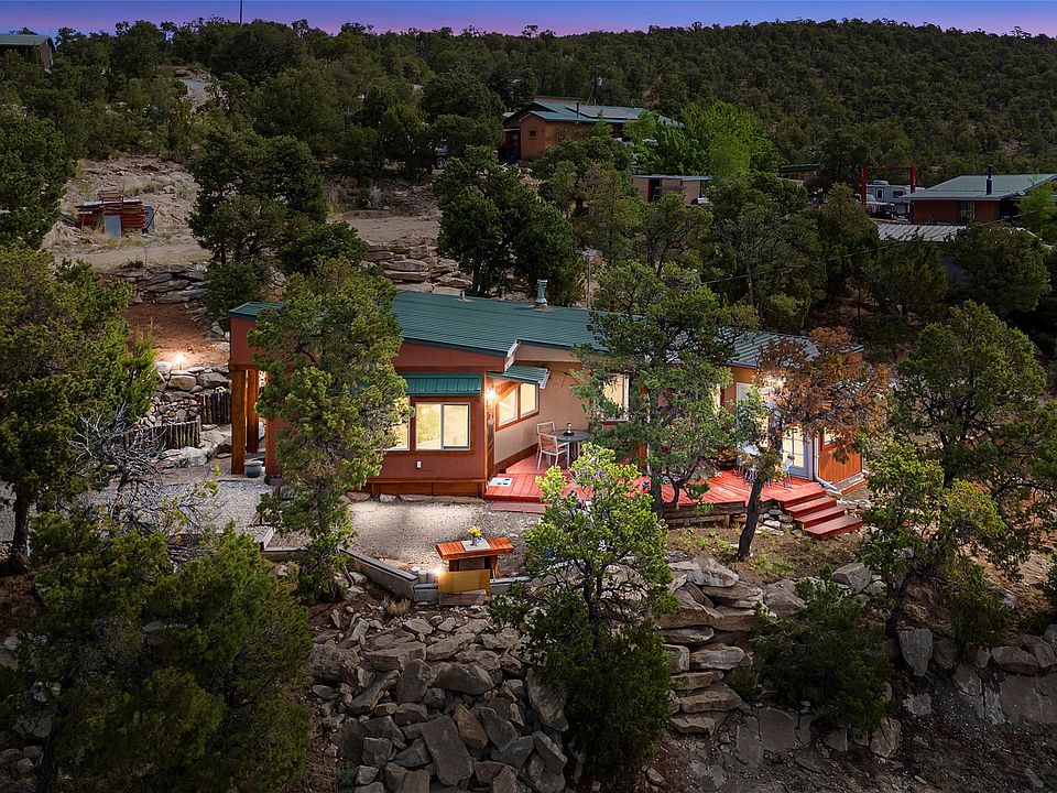 Back on the market with additional acreage! Discover this perfect 1.362 acre escape with this custom-built home in Pecos, New Mexico just minutes from the beauty of the Santa Fe National forest and under 29 minuets from Santa Fe. This charming one-bedroom, one-bath residence offers a stunning living space ideal for unwinding, featuring breathtaking 360-degree views and the tranquil beauty of wooded meadows from your covered patio. Benefit from pre-completed dirt work, ready for additional structures, and the convenience of a shared well and newly installed septic system being completed August 2024. The property is just a short 25 minute drive to Santa Fe and only 15 minutes from Pecos Wilderness for fishing, hiking, and hunting. Experience true privacy with a secluded dirt road gated entrance and enjoy the rich amenities of Pecos, where outdoor adventures and historical treasures await. just a short drive from Santa Fe’s vibrant culture.