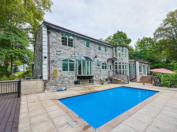 STONE Exterior with SLATE Roof. Paneled Driveway and backyard with New Deck. Great for family Pool Party. Granite Eat-in Kitchen, Marble counter top, 2 Sinks. Renovated 5 Bathrooms 5 bedrooms. Enjoy your own Backyard small garden and In Ground Heated Pool.