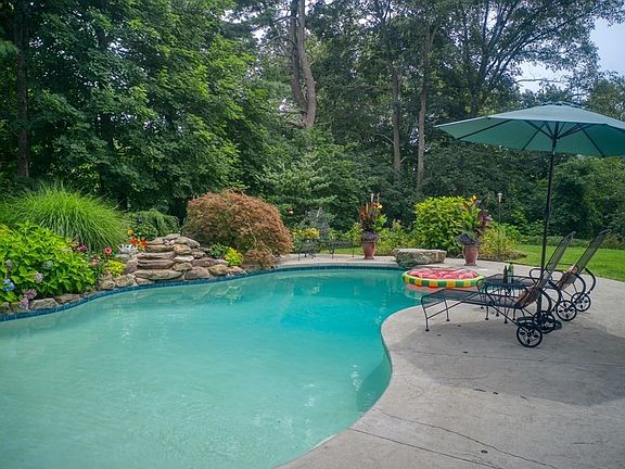 Your new backyard will be your VACATION DESTINATION! This home features a "walk to downtown" location, open floor plan, NEW Kitchen AND the backyard you have always dreamed of with heated, gunite, in-ground pool, custom built fireplace & many mature, perennial plantings. The minute you walk into this lovely colonial w/ fabulous open floor plan, you will say "This is what I have been looking for!" Stunning new Kitchen has large center island w/ quartz counters, SS appliances & dining area w/ bay window. Front to back Family Rm w/ fireplace & add'l space which can be a Living Room, Home Office - whatever you need! Second floor has 4 bedrms including Master Suite w/ full bath plus add'l 2nd Fl full bath. Finished LL makes a great Playroom plus Laundry area. Other features include solar panels, town water & town sewer, natural gas, irrigation, updated windows, recently painted ext & int, 2 car garage w/ new garage door motors, new boiler & hot water heater (2019). You will love this home