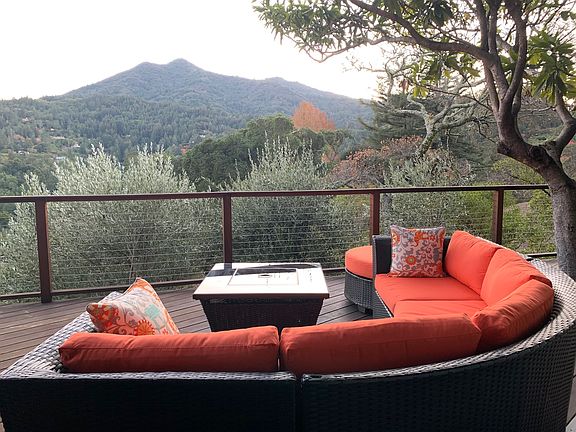 Spacious One-Bedroom Flat in Serene Kent Woodlands Setting Discover this inviting and spacious one-bedroom flat nestled in the heart of Marin County's desirable Kent Woodlands neighborhood. Located on the first floor of a two-story ranch home, the flat has its own private entrance and boasts exclusive access to expansive outdoor living areas. Step outside to enjoy a large private deck with stunning views, a cozy fire pit with a round outdoor couch, a dining table for four, and a swinging chair perfect for reading or relaxing. One of the highlights is the secluded hot tub ideal for soaking under the stars or unwinding as the sun sets over the surrounding hills. Inside, the flat is tastefully furnished and fully equipped. The kitchen comes stocked with everything you need for home cooking, and the living area features a comfortable sectional sofa, TV, and a Bose Bluetooth speaker for your enjoyment. The master bedroom offers a luxurious Tempur-Pedic king-size bed, and the brand-new bathroom includes a spacious shower, double sinks, and a separate toilet room. Set at the base of Mt. Tam, this peaceful retreat is surrounded by natural beauty and open space. Whether you're looking for a quiet place to recharge or a scenic base for exploring Marin, this flat offers comfort, privacy, and tranquility in one of the most beautiful settings in the Bay Area. Rent includes all utilities and cable access.