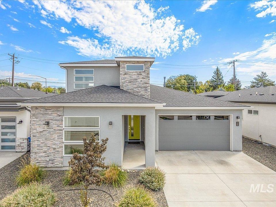 Located in the heart of Eagle you cannot miss this beauty! Walk or bike to downtown Eagle, Guerber Park, Eagle Bike Park or the foothills. This high quality home is built for low maintenance living with wood floors throughout the main floor living areas, carpet in the bedrooms and closets and tile bathrooms and laundry. The modern kitchen includes bright white quarts countertops, stainless steel appliances, full tile backsplash and upper and lower undercabinet lighting. The main level features a Master Suite and Jr Suite, each includes a spacious bathroom with tile shower and walk-in closet. Light and bright this modern home brings the best of low maintenance lifestyle in the boutique Crestpoint Place neighborhood.