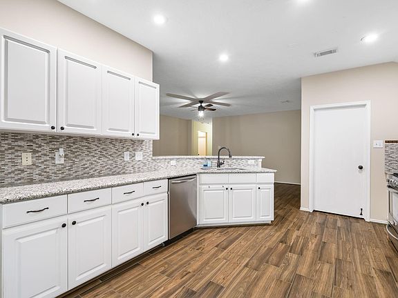 Modern appliancesLarge open floor planGranite countertopsTile backsplashSpacious roomsSoft lightingHuge pantry area