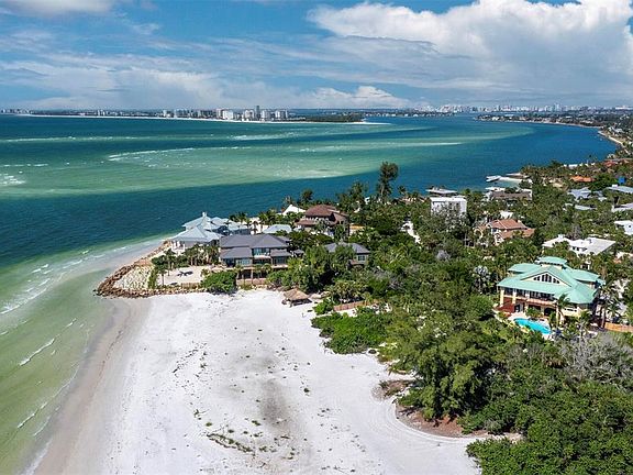 Welcome to this extraordinary Gulf-front estate located in one of Siesta Key’s most exclusive enclaves. Situated on a full acre in the private Sandy Hook community, this fully renovated, turnkey residence offers over 5,000 square feet of refined living space and more than 3,000 square feet of covered outdoor areas, all just a short stroll from Siesta Key Village and with direct access to a private community beach. Inside, the layout features five en-suite bedrooms, two powder baths, a dedicated office, and a three-car garage with beach cruisers and kayaks included. Floor-to-ceiling Andersen impact windows frame panoramic Gulf views, while rich finishes like Sapele mahogany siding, IPE hardwood decking, and a custom Pecky Cypress entertainment system reflect the home’s elevated craftsmanship. The chef’s kitchen is a showpiece, centered around a Labradorite Lumarian Blue granite island imported from Brazil, with Wolf, Miele, and Sub-Zero appliances throughout. The spa-inspired primary suite includes a waterfall feature wall, dual curbless shower, lighted soaking tub, and Toto smart toilets. A private elevator and full smart-home system ensure ease and efficiency. Outdoor living is exceptional, with a heated saltwater pool and Jacuzzi, a fully equipped summer kitchen, a covered outdoor living room with fireplace and TV, a poolside theater with dual fireplaces and TVs, and a sunset-facing gas fire pit. The professionally designed $1M+ tropical landscape includes advanced mosquito-misting and irrigation systems for effortless maintenance. With direct access to a private, resident-only beach and an ideal location just minutes from restaurants, shopping, and entertainment, this one-of-a-kind estate offers a rare opportunity to experience the best of coastal living on Siesta Key. Designed for elevated living and effortless enjoyment, 26 Sandy Hook Road S is more than a home—it is a fully realized Gulf-front sanctuary.
