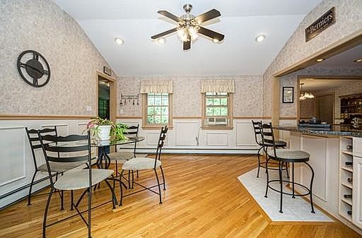 - Kit Dscrp: Dining Area, Ceiling Fan(s), Flooring - Hardwood, Countertops - Stone/Granite/Solid, Flooring - Stone/Ceramic Tile, Open Floor Plan, Recessed Lighting, Chair Rail, Wainscoting, Peninsula