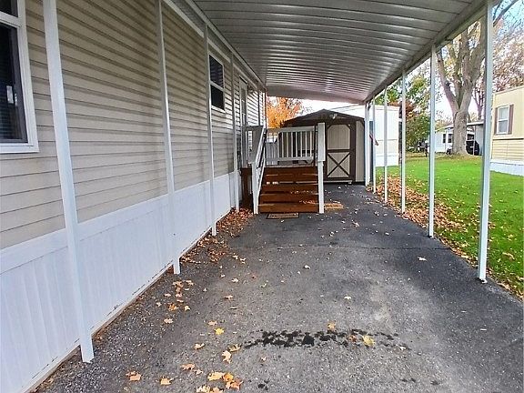 to maintain home. Lot Rent is 495.00/month and includes public water and public sewer, garbage collection and taxes. Also community pool and clubhouse with kitchen. Great location and easy access to NYS thruway and other major routes. Access to Manchester Gateway Trail and Canandaigua outlet. Park approval is required prior to submitting an offers.