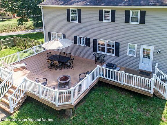 Beautiful custom colonial located on one of the prettiest streets in Freehold Twp! Truly a must see gorgeous HOME & PROPERTY. This home sits on a small hill on just under one acre, with park like views from every area of the property. Close to major highways, bus stops, restaurants/retail Yet so peaceful and quiet. CITY SEWER!! This home boasts of large rooms, gleaming hardwood floors throughout, including bedrooms and hallways. Wood burning fireplace in the family room & decorative molding throughout downstairs. Eat in kitchen w/ new stainless steel appliances overlooking a beautiful deck. A breathtaking huge finished basement w/ pool table