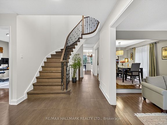 Welcome to this beautifully upgraded 4-bedroom, 4-bathroom detached home with double garage in the prestigious Thornlea community of Markham. Offering nearly 3,746 Sq. Ft living area with a finished walkout basement. This luxury home features hardwood floors, High quality percaline on hallway and kitchen. The gourmet kitchen features custom cabinetry, stone counters, backsplash, and Island, while the family room highlights a custom fireplace and built-ins and office. Upstairs, the primary suite offers a spa-like ensuite, walk-in closet, and sitting area, with another bedroom featuring its own ensuite. The basement includes a rec room, wet bar, nanny suite, and full bath. Outdoors, the home impresses with a newly interlocked driveway offering parking for four (no sidewalk), elegant entryway, landscaped yard, and a large private deck surrounded by mature trees perfect for entertaining or quiet relaxation. Ideally located just steps to parks and trails, close to top-ranked schools including Thornlea SS (French Immersion), Bayview Fairways PS, Bayview Glen PS and St. Robert CHS (IB program), with quick access to Hwy 404, 407, Steeles, and Hwy 7 shopping and dining. A rare move-in ready luxury home in one of Markhams most desirable neighbourhoods.
