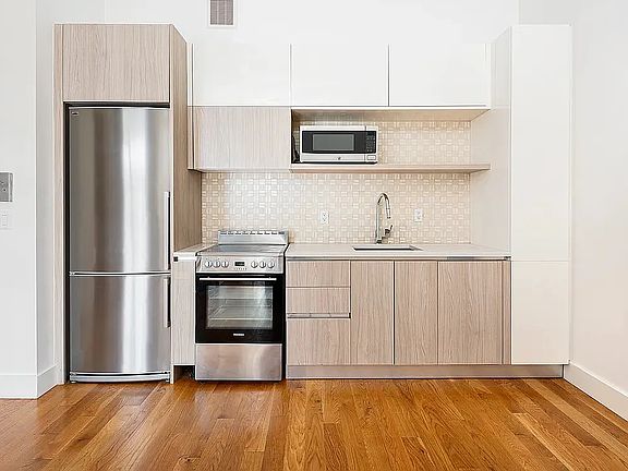 Situated in a new construction building on Starr Street, this charming home offers a private oasis in the heart of the bustling Bushwick. The kitchen is modern and spacious and includes a dishwasher, microwave, tons of cabinet space, and Ceasarstone countertops.