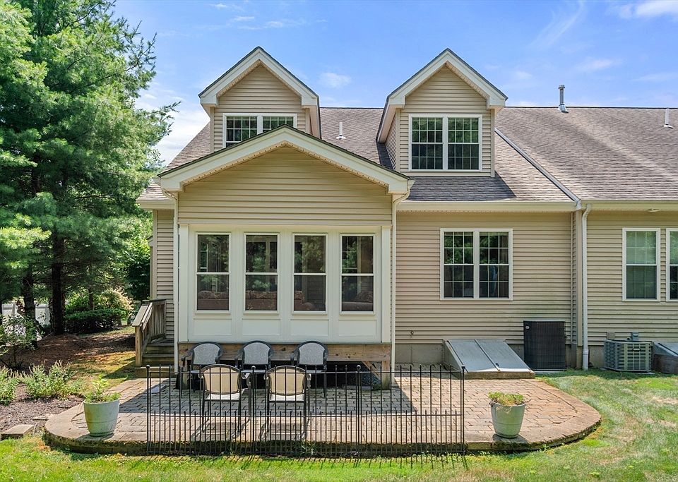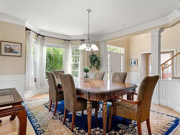 Beautiful Former Model Home with premium upgrades. Welcome to this stunning end-unit townhouse in the sought-after 55+ community of Stonebridge Commons - a well-established and beautifully maintained neighborhood. This former model home is loaded with premium builder upgrades and offers a thoughtfully designed open-concept layout with 9’ ceilings, a striking two-story foyer, and custom moldings throughout. The formal dining room features elegant wainscoting, while the upgraded kitchen flows seamlessly into a sunlit dining area, living room and three-season porch overlooking scenic wooded views. The first-floor Primary Suite offers a spa-like retreat with a luxurious soaking tub. Also on the main level: home office, laundry, and a half bath for added convenience. Upstairs, you'll find an open loft area, two guest bedrooms, & a full bath. Additional highlights include central A/C, a garage, professional landscaping with irrigation, and the ease of maintenance free living.