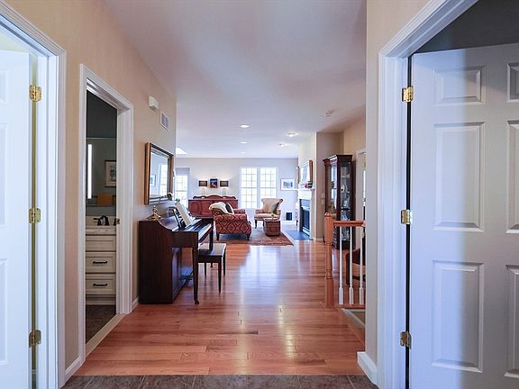 SO MANY UPDATES and UPGRADES! This beautiful condo has been meticulously maintained! First, a 2-car garage & wide driveway. Next a front porch with room for seating. Enter into your large foyer with coat closet. A guest bedroom has double windows & abundant natural light. The updated FULL guest bath has a young vanity, lit mirror & tile floor. The open & airy main space has a beautiful cabinet filled kitchen w/gas stove, a sink w/special features, & quartz counters. A spacious island is great for casual dining. The living/dining rooms have hardwood floors, high ceilings, skylight & gas fireplace. The primary bedroom suite is complete w/walk-in closet, 2nd closet & spacious bath w/double vanity & shower w/glass door. Lower level walk-out has plenty of storage, & finished space for entertaining & guests. Gas heat AND central air 2024. Electric heat pump furnace added in 2024 & gas hot water heater 2023. Your oversized deck overlooks the woods. See UPGRADE sheet attached. SEE IT TODAY!