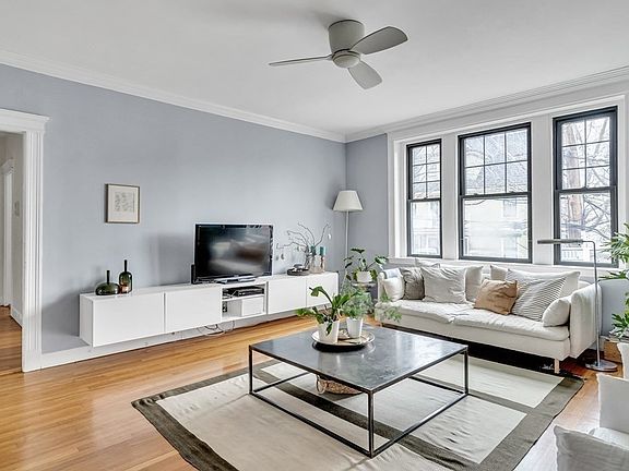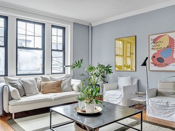 Lofty ceiling heights, and walls of windows that bring in an abundance of natural light are the hallmarks of this turn-key, three bed, one bath home perched conveniently at the base of Corey Hill. The generously proportioned rooms, open floor plan living/dining rooms, and updated kitchen with its gas range, granite counters, and large peninsula with seating for three provide space for everyone to live, work and play. Amenities include hardwood floors, in-unit laundry, and a recently renovated marble tiled bathroom. Steps from restaurants, shops and grocery stores on Beacon Street, as well as the MBTA Green Line (C-line @ Summit Ave). Convenient to Coolidge Corner and Washington Square, as well as Driscoll Elementary School, Griggs Park, and Corey Hill Park. Pet friendly, and well maintained association. Rental parking available from the association on a first come, first served basis for unit owners. Additional storage in basement. HOA fees include heat and hot water.
