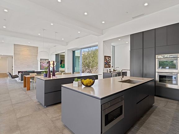 Beautiful custom contemporary home in Tamarisk Ridge, Rancho Mirage. This amazing property was designed by Tom Jakway, built by Ken Schmale, and interior designed by Anneka Pesch w/Studio Pesch. This 4 bedroom, 4.5 bathroom home is 3,902 square feet, including a casita, and has an open floorpan suited for both everyday living and grand entertaining. Inside you'll find Italian porcelain floors, massive pocket sliding doors, LED lighting, electric window shades, fire sprinkler system, and much more. The gourmet kitchen has custom Italian cabinets, Caesar stone countertops, stainless steel backsplash, and high-end appliances. The outdoor area consists of a salt water pool and spa, covered entertaining patio, built-in bbq bar, meticulously detailed landscaping with synthetic turf, all overlooking west facing mountain views. Large 3 car garage. Tamarisk Ridge has a direct gate to Tamarisk Country Club. Offered designer furnished.