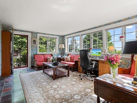 Elegance and old world come to mind in this 5 bed,3 bath,1930 Colonial home. Perched high up on a 16,000 sq ft lot,named for its sunset & ocean views. Enter into a foyer w/ coat room on the right and fireplaced study on the left. Formal living room, w/ bay windows and extra large fireplace, sunroom w/ windows toward the ocean & french doors to dining room w/built in china cabinets. Full pantry & kitchen w/stainless steel appliances, double sinks, double oven and more views. 2 oversized porches allow for easy outdoor dining; 1 screened & covered,the other open air for sunbathing. 1/2 ba, mudroom & 2 car attached garage. 5 bedrooms & 2 baths, in 2 separate wings make it ideal for an inlaw or home offices. Period details of red oak floors, pedestal sinks,french doors and butler's pantry. Addtl 1800+ sq ft basement & large attic space w/lots of light could be finished easily. A large above ground pool guarantees a fun filled summer for your family.