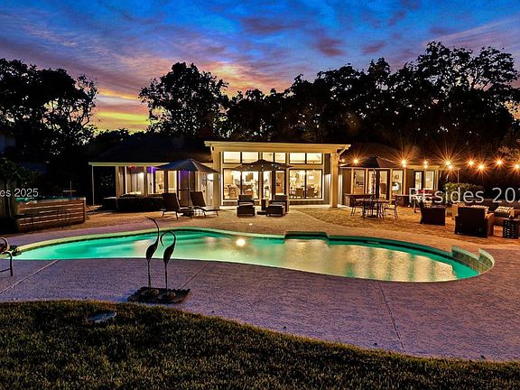 Island living at its best! This stunning, single-story Port Royal home has been completely remodeled & expanded, blending coastal ease w/ modern luxury. The open layout is designed for gathering from the gourmet kitchen w/ expanded center island, seating for 6, walk-in pantry, to the inviting living, dining & media spaces w/ fireplace, built-ins & beverage center. Walls of windows frame the paved patio, private pool, hot tub & lush landscaping along the golf course. The primary suite is a serene retreat w/ screen porch, soaking tub & steam shower, while 3 guest BRs are set apart for privacy. With 2 offices, climate-controlled storage, & an oversized 2-car garage w/ epoxy floors, this 3,400 sq. ft. home offers the perfect balance of lifestyle, comfort & function. Owners enjoy beach access, pool, tennis/pickleball, beach house, playground, leisure trails, security & more all w/ the peace of no short-term rentals.