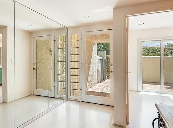 Welcome to 26 Sycamore Lane in The Terraces gated community. Enter through the beautiful glass front door of this 3 bedroom 2.5 bath townhouse with smooth ceilings, recessed lighting and well placed sky-lights throughout. Enjoy preparing meals in the bright kitchen with eat-in breakfast area and sliding glass door to the large patio perfect for entertaining. Laminate flooring, gas stove, double oven, large pantry, glass front cabinets, custom paint & back splash round out the kitchen. Enter the formal dining room with built-in side board, and custom dining table that opens to the tranquil living room with cozy gas fireplace, built-in shelves, surround sound system and sliding glass door to the balcony. Upstairs are three bedrooms and 2 baths, laundry and linen cabinet. Relax in the master suite with two walk-in closets, sliding glass door to the private balcony, built-in surround sound speakers and master bath with spa tub, shower, and double sinks. Super functionality everywhere with dual paned windows and sliding glass doors, air conditioning, tons of storage in the direct access garage, and water softener system. The community features swimming pools and spas, tennis courts, a childrens playground, clubhouse, and is conveniently located close to shopping, entertainment and award winning Palos Verdes schools.